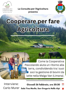 La Consulta per l'Agricoltura del Comune di San Gregorio nelle Alpi presenta la serata Cooperare per fare Agricoltura.